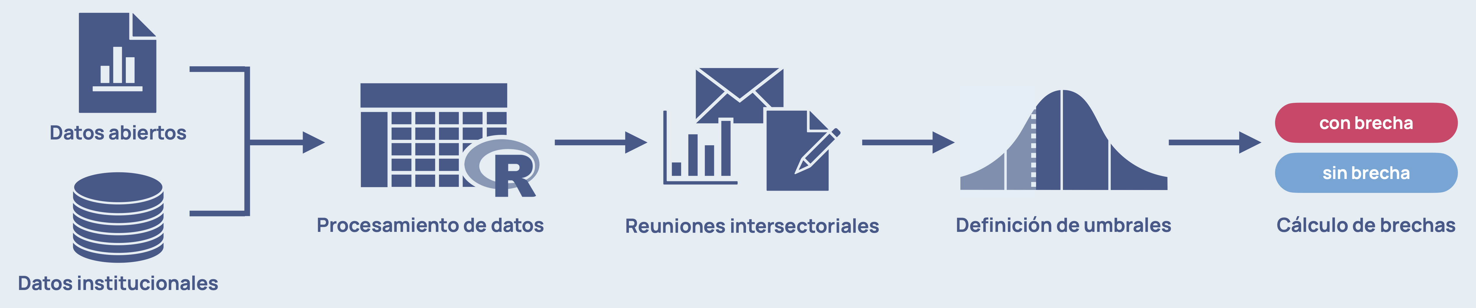 Los datos fueron levantados convocando a una mesa intersectorial con representantes de 24 instituciones gubernamentales para recopilar datos, indicadores y estándares, todos trabajados en 2 reuniones ampliadas y más de 25 encuentros bilaterales para procesar y validar la información recopilada.